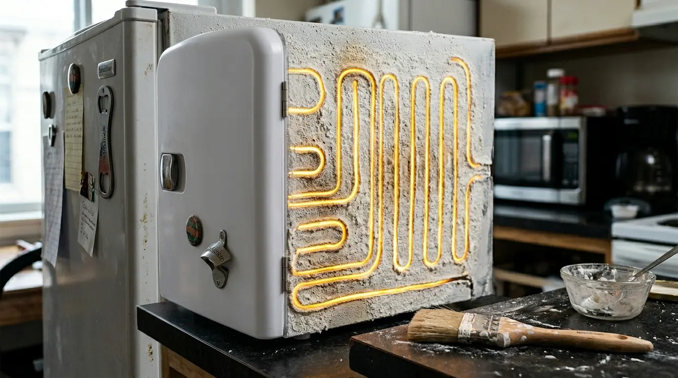 Before we start mixing chemicals, it helps to understand why these lines are hidden in the first place. In older, full-sized refrigerators, the condenser coils (the pipes that exhaust heat) were bolted to the outside back wall in a large, dusty grid.