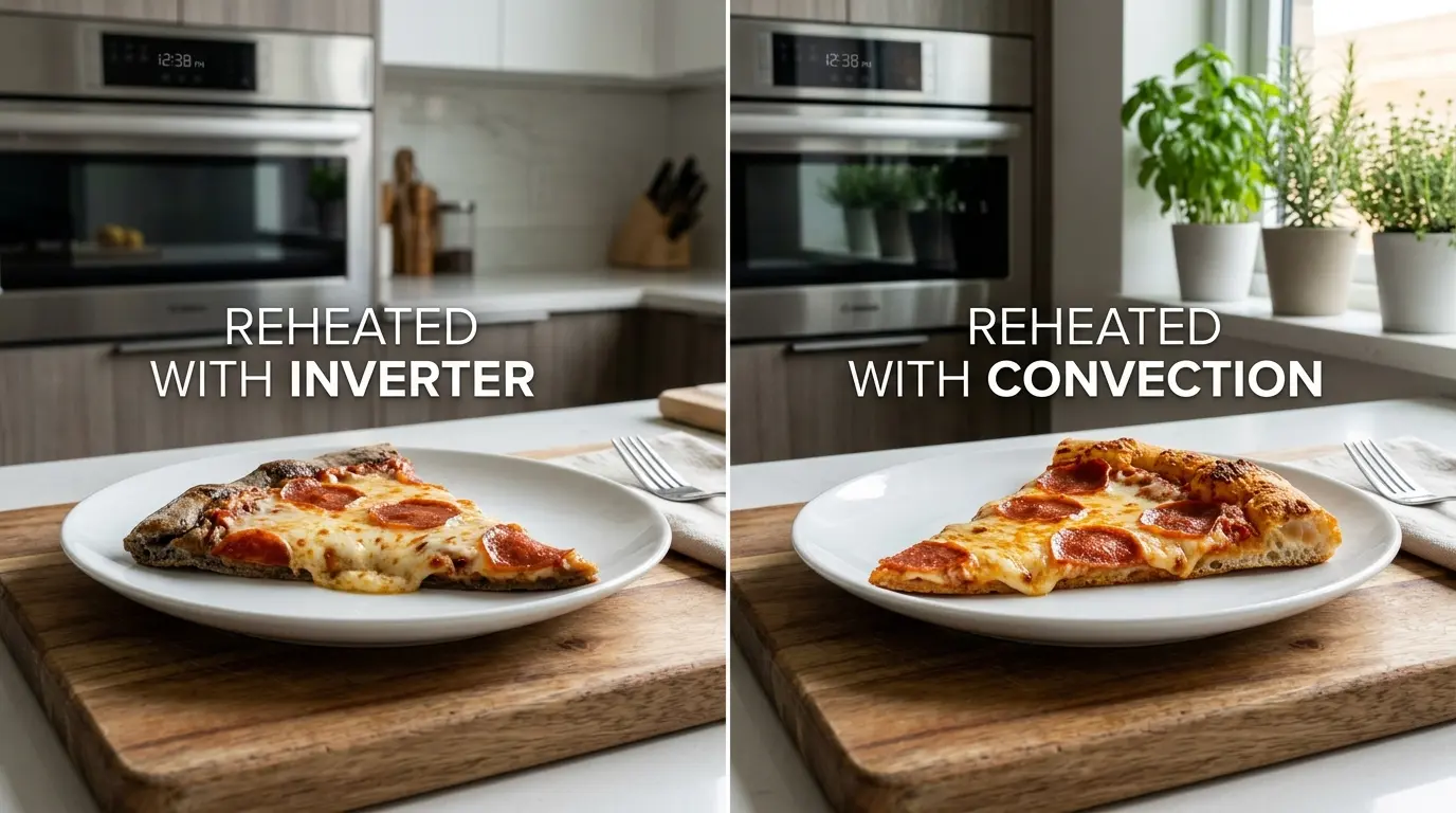 - ❌ What it DOES NOT do: It does not crisp, brown, or bake. It still cooks food strictly using microwave radiation, which heats by vibrating the water molecules inside the food. Therefore, a slice of pizza reheated in an Inverter microwave will be evenly hot from edge to edge, but the crust will still be soft and soggy.