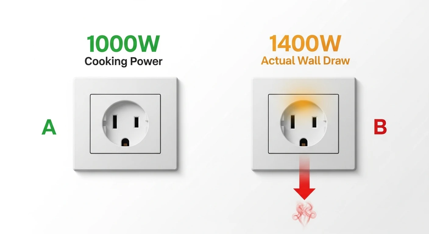 However, the laws of physics dictate that energy is lost during the conversion process (mostly as heat within the transformer and magnetron). To produce 1,000 watts of cooking power, a standard microwave actually draws between 1,300 and 1,500 watts from your wall outlet. This is known as the Actual Power Draw. Most entry-level microwaves are only 60-70% efficient.