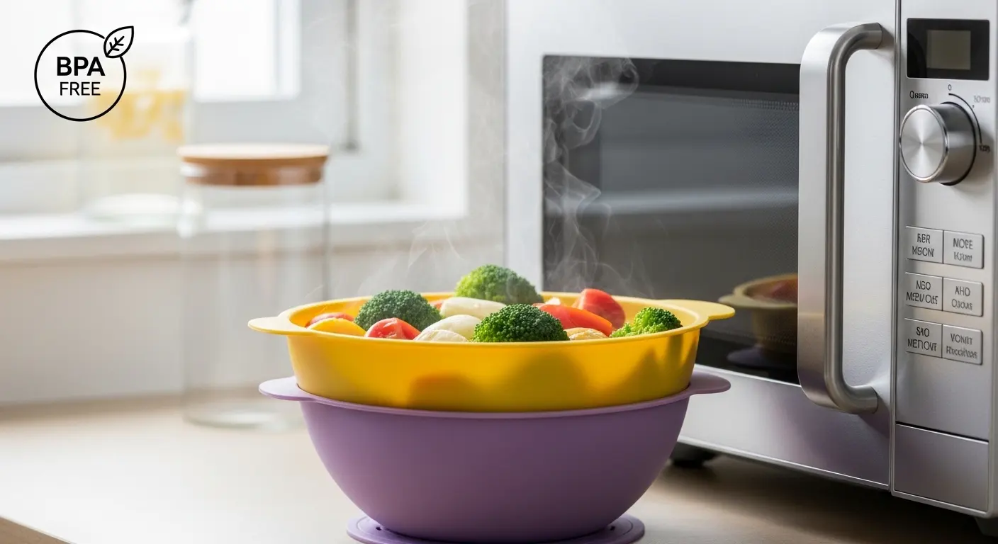 - Platinum-Cured Silicone: The rising star of 2026. It is chemically stable and doesn’t absorb microwave energy, ensuring 100% of the power goes into the food. See our Silicone vs Plastic Microwave Containers.